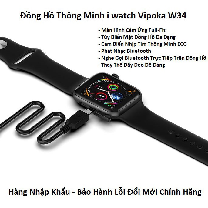 Đồng Hồ Thông Minh I Watch Vipoka W34 Cao Cấp Có Tiếng Việt Nghe Gọi Điện Thoại Seri iv 2020