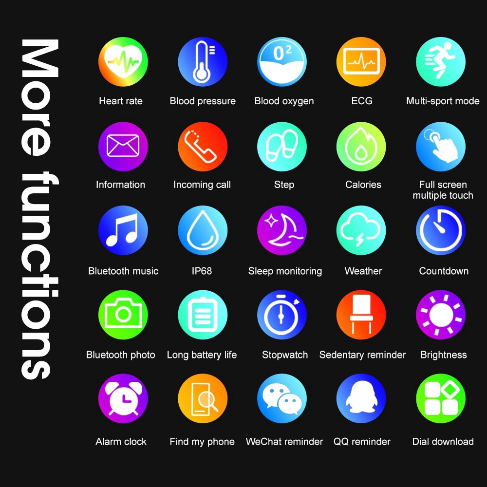 Các đặc điểm chính: chống nước IP, độ phân giải đầy đủ 1,2 inch AMOLED độ phân giải cao 390 * 390 sạc không dây, APP đẩy tin nhắn, phát sáng, Bluetooth 5.1 phông chữ vector (giống như điện thoại Android)