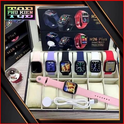 PHUKIENTQD Xin giới thiệu tới quý khách hàng sản phẩm mới, đây là siêu phẩm của siêu phẩm chính là Đồng Hồ Thông Minh M26 Plus Smartwatch, phiên bản đồng hồ thông minh với rất nhiều tính năng ưu việt, sở hữu màn hình cân đối 4 viền với độ phân giải 320*380 HD Rentina màn hình hiển thị sáng và sắc nét, M26 plus có cảm ứng cực kỳ mượt mà, 2 nút và sạc không dây cực xịn sò, bluetooth 5.2 và loa thoại lớn cho trải nghiệm nghe gọi ổn định và rõ ràng.