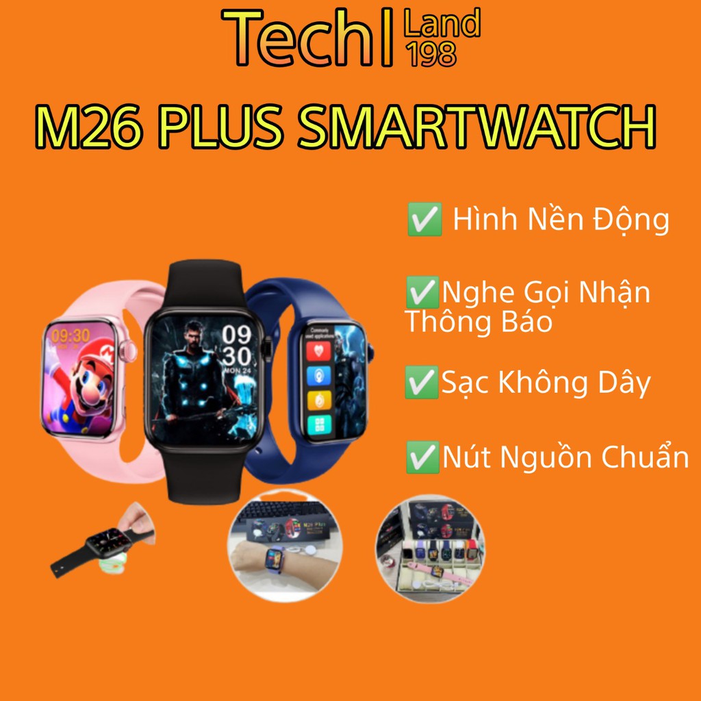 Đồng Hồ Thông Minh M26 Plus Màn Hình Tràn Viền Hình Nền Động Thay Đổi Hình Nền Tùy Ý Pin Trâu 2-3 Ngày 2 Nút Nguồn Chuẩn