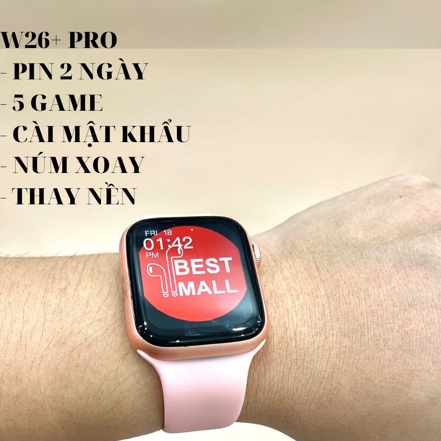 Đồng Hồ Thông Minh Nam Nữ W26+ Pro App Hiwatch ( Cài Mật Khẩu - Thay Hình Nền, 5 Game, Nút Xoay ) Cao Cấp Hơn T500+ Plus