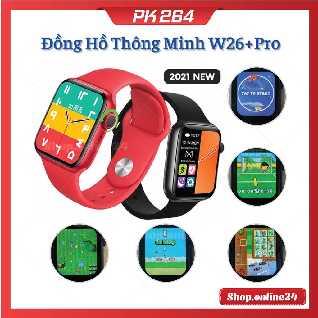 ** Đồng hồ thông minh nam nữa W26+ Pro sử dụng app Hiwatch phiên bản nâng cấp 2021 xịn xò hơn T500+- W26+ Pro trang bị 10 game hot nhất ( bắn máy bay, zombie, football, láp pi bird, phi hành gia,..)