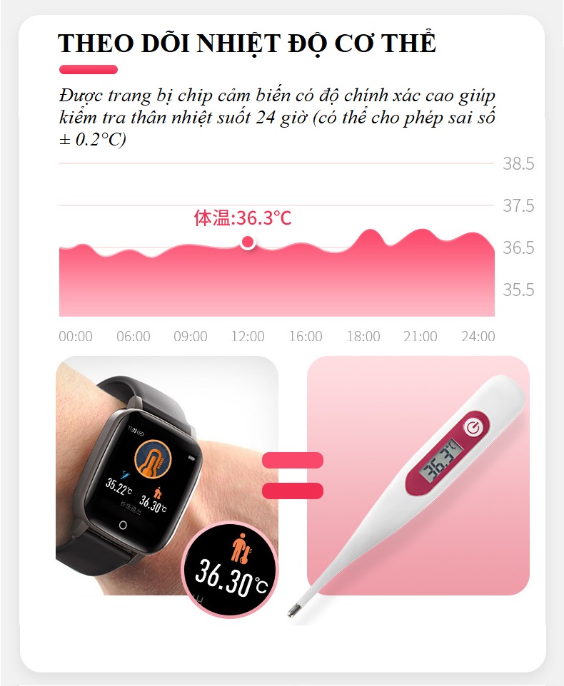 Hỗ trợ đo nhiệt độ cơ thể, và cảnh báo khi nhiệt độ cơ thể tăng cao