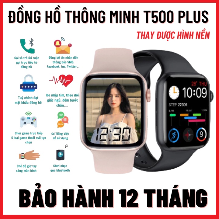 Đồng Hồ Thông Minh T500 Plus(Bản 2021)-Thay Được Hình Nền-Chơi Game-Nghe Nhạc-Nghe Gọi-Bảo Hành 12 Tháng