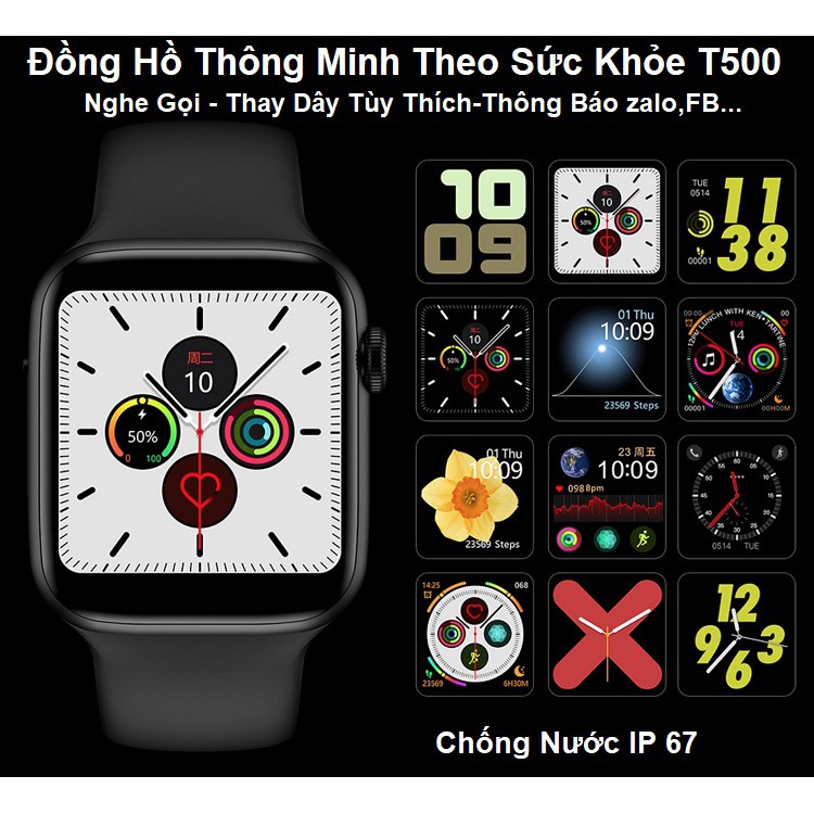 Giới thiệu Đồng Hồ Thông Minh T500 Seri 5 Thay Được Dây | kết nối bluetooth kích thước 44mm đo nhịp tim tiện dụng, chống nước IP67