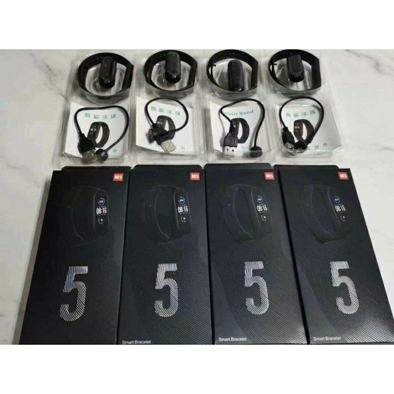 BỘ SẢN PHẨM: hộp sản phẩm, cáp sạc, đồng hồ thông minh M5, sách hướng dẫn.