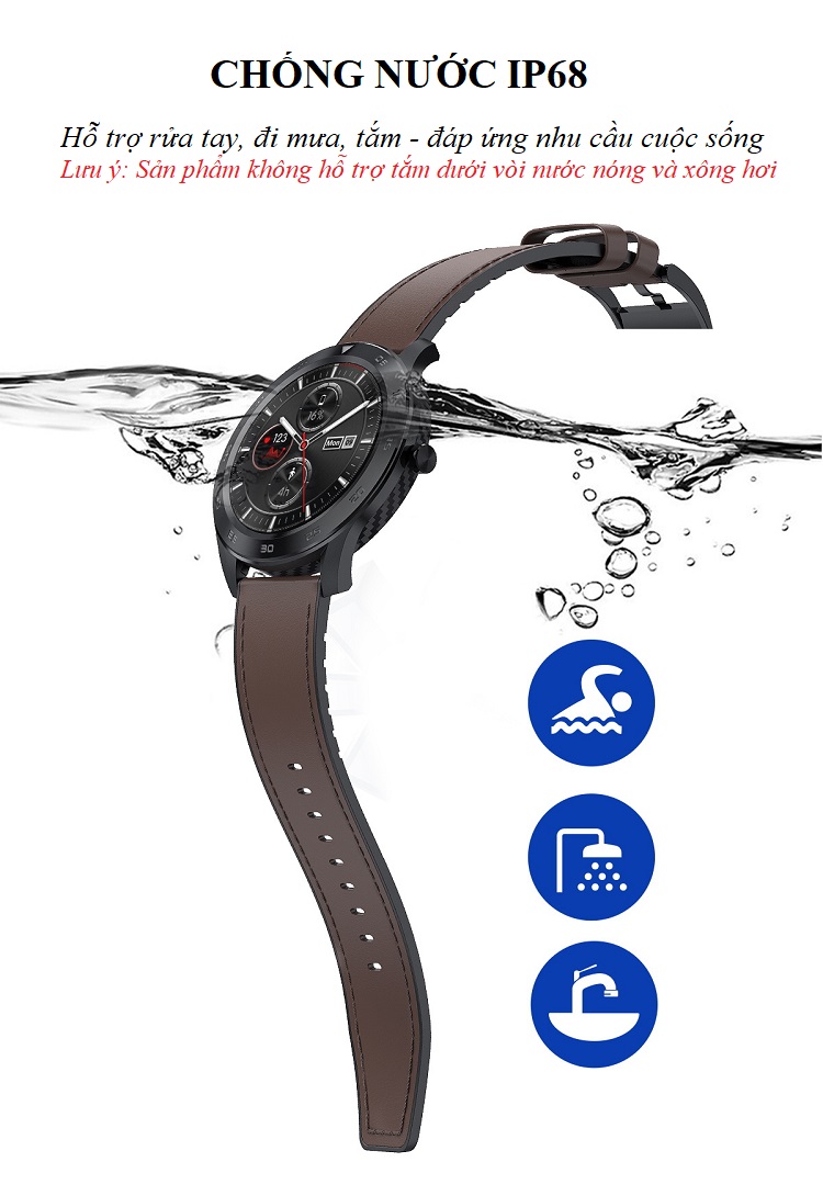 Khả năng chống nước IP68: sử dụng tắm, rửa mặt, đi mưa, bơi lộ (nhà sản xuất khuyến cáo không nên để đồng hồ ở độ sâu trên 1m và trên 30p, lưu ý không sử dụng đồng hồ trong phòng tắm hơi hoặc tắm dưới vòi nước nóng)