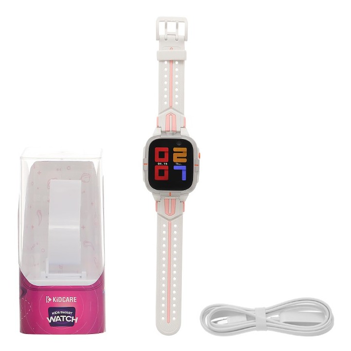 Đồng hồ thông minh trẻ em Kidcare S8 4G Trắng Hồng kháng nước 2ATM có định vị GPS màn hình TFT - Chính hãng BH 12 tháng