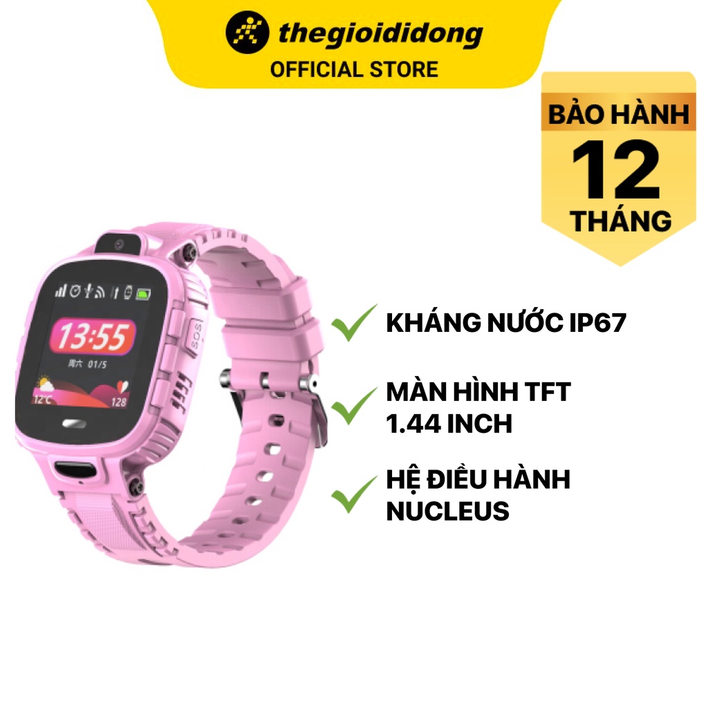 Điện Thoại & Phụ Kiện > Thiết bị đeo thông minh > Đồng hồ thông minh & Vòng đeo tay sức khỏe || Đồng hồ thông minh trẻ em Kidcare 26 Hồng kháng nước IP67 có định vị GPS màn hình TFT 1.44" - Chính hãng BH 12 thángCòn hàng