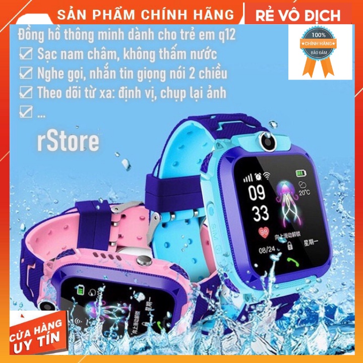 Đồng Hồ Thông Minh Trẻ Em Q12 Lắp Sim Nghe Gọi 2 Chiều,Nhắn Tin, Định Vị LBS, Chống Nước IP67, cuộc goi SOS khẩn cấp