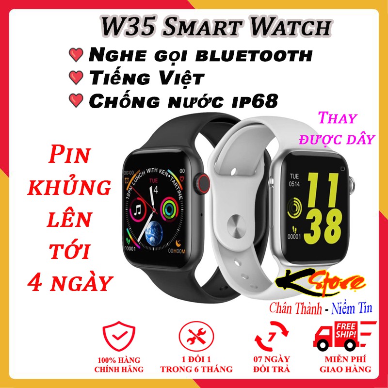 Đồng hồ thông minh W35, Nghe gọi Bluetooth, chống nước IP68, 2 nút cạnh sườn siêu đẹp, Bảo hành 6 tháng