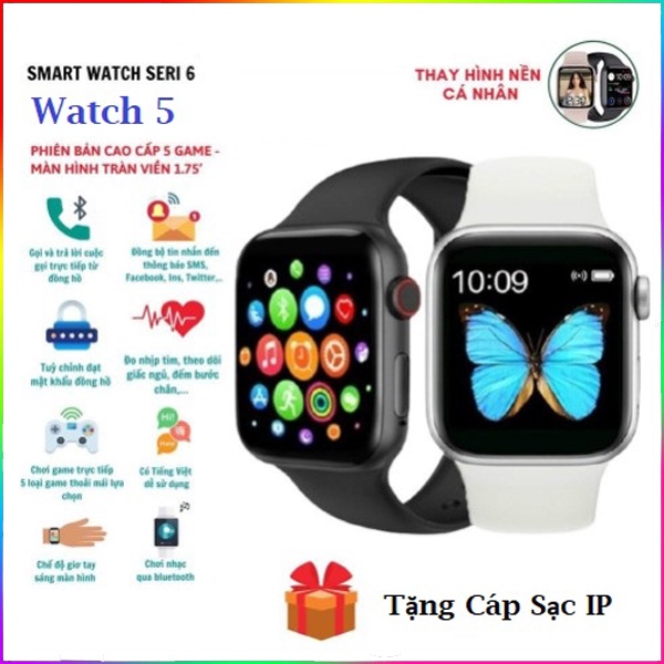 Đồng hồ thông minh Watch 5 Plus Series 6 Định vị, Thay Dây, Thay hình nền, Nghe Gọi, Chống nước IP67