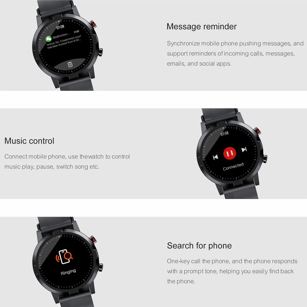 - Nhiều chức năng hơn: Bước, Khoảng cách, Điều khiển nhạc, Thời tiết, Hẹn giờ, Đồng hồ báo thức, Tìm điện thoại, v.v.