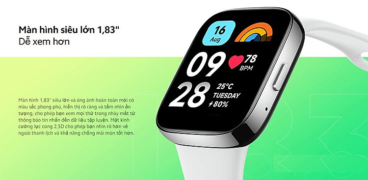 Xiaomi Redmi Watch 3 Active với ngôn ngữ thiết kế thời thượng phù hợp với nhiều phong cách cá nhân. Bên cạnh đó, đồng hồ cũng được trang bị rất nhiều tính năng sức khỏe, chế độ thể thao đa dạng, viên pin lớn,... chắc chắn sẽ mang đến cho người dùng những trải nghiệm sử dụng hài lòng.