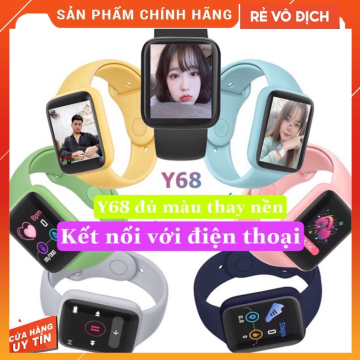 Đồng Hồ Thông Minh Y68 Bản Mới Nhất Thay Được Hình Nền Kết Nối Với Điện thoại Phù Hợp Cả Nam và Nữ