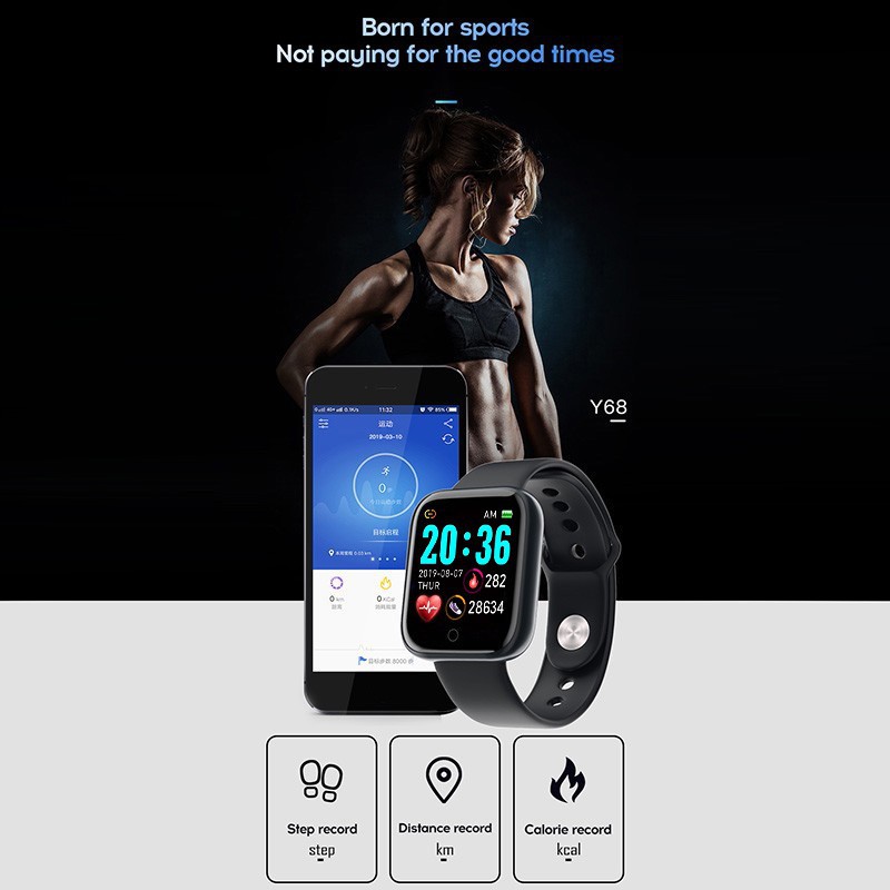 Đồng hồ thông minh Y68 chống nước kết nối bluetooth hỗ trợ theo dõi sức khỏe