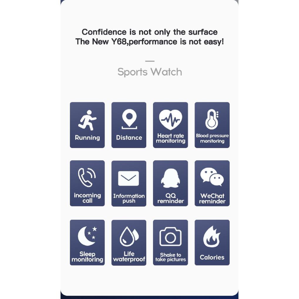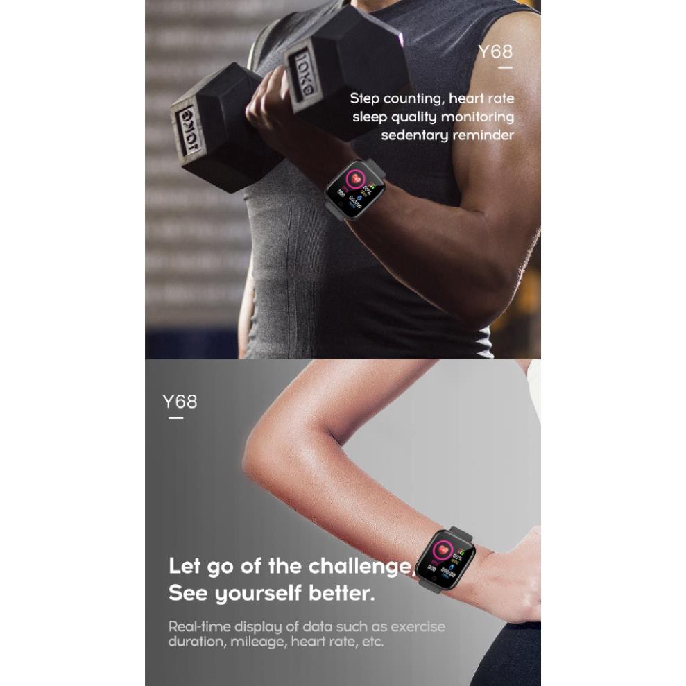 Đồng Hồ Thông Minh Y68 Theo Dõi Sức Khỏe Kèm Phụ Kiện
