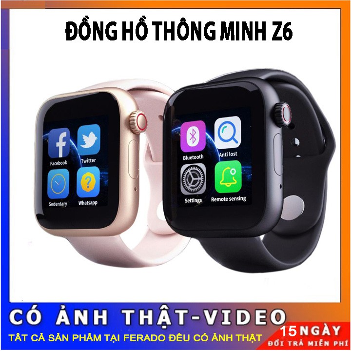 Điện Thoại & Phụ Kiện > Thiết bị đeo thông minh > Đồng hồ thông minh & Vòng đeo tay sức khỏe || Đồng hồ thông minh z6 kết nối Bluetooth hỗ trợ thẻ SIMCòn hàng