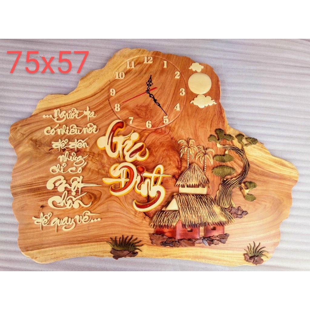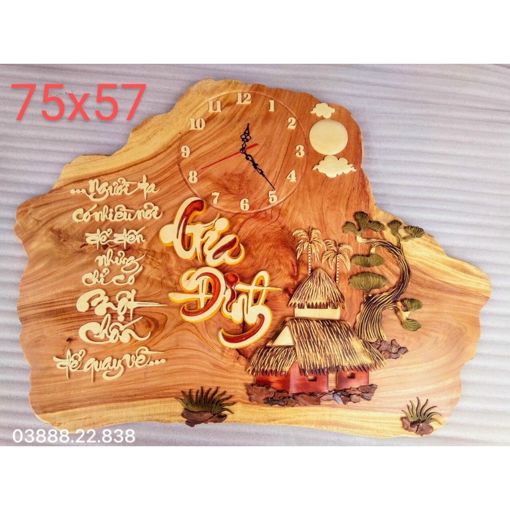 Đồng hồ trang gỗ gõ rất đẹpKích thước: 75x57