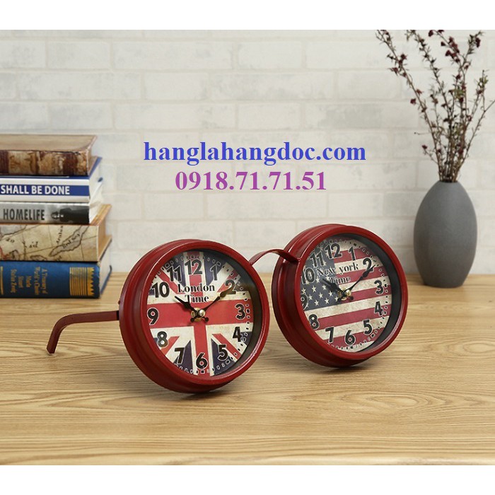 Đồng hồ trang tri cổ điển vintage để bàn, mô hình mắt kính siêu độc đáo