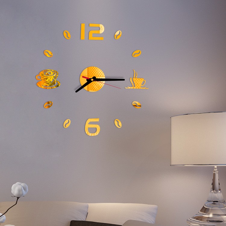Đồng hồ trang trí dán tường DH46 - Hình ly cafe - Đồng hồ treo tường lãng mạn