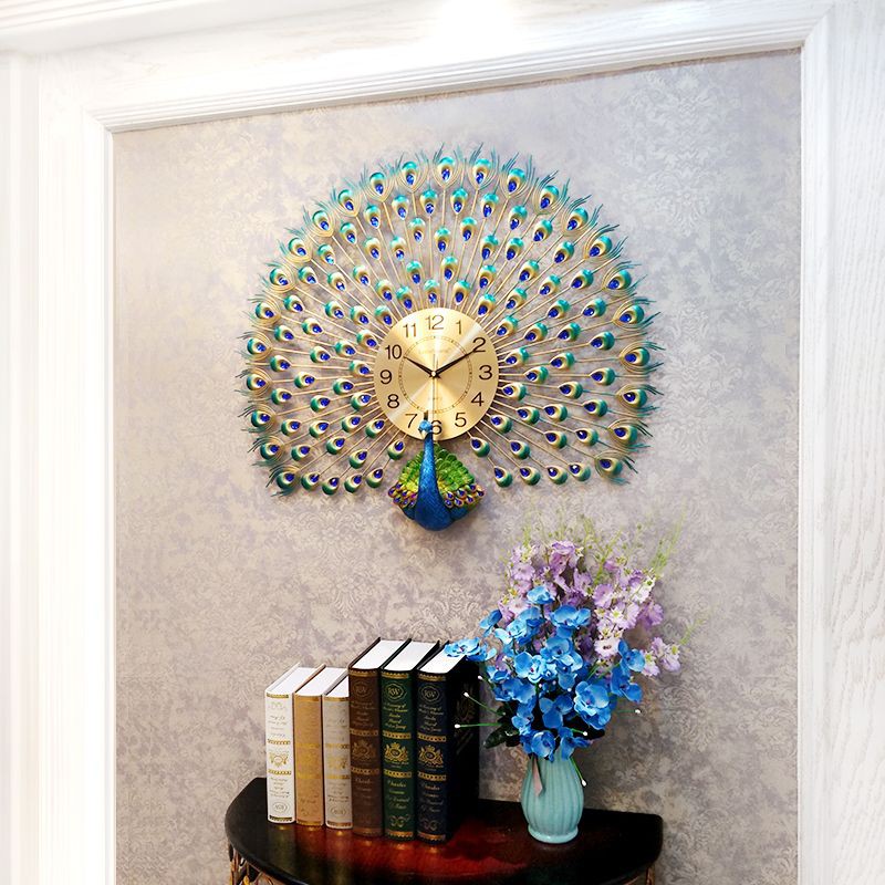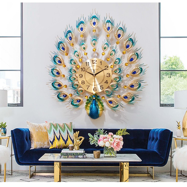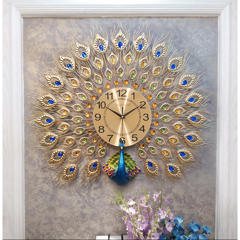 Đồng Hồ Trang Trí Phòng Khách Công Đuôi Vàng