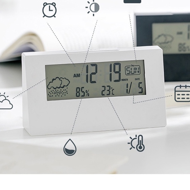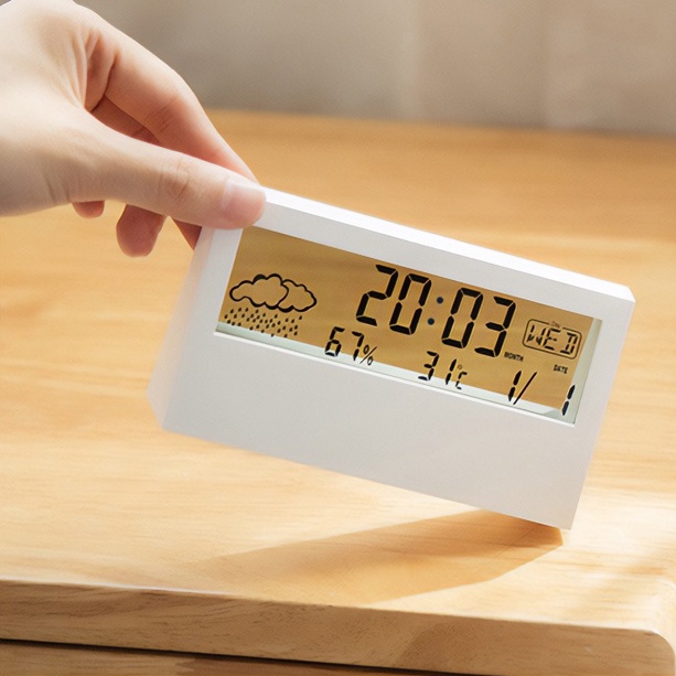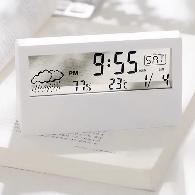 - Đồng hồ led điện tử để bàn với thiết kế nhỏ gọn, màu trắng, nền trong suốt rất xinh xắn cho căn phòng của bạn.