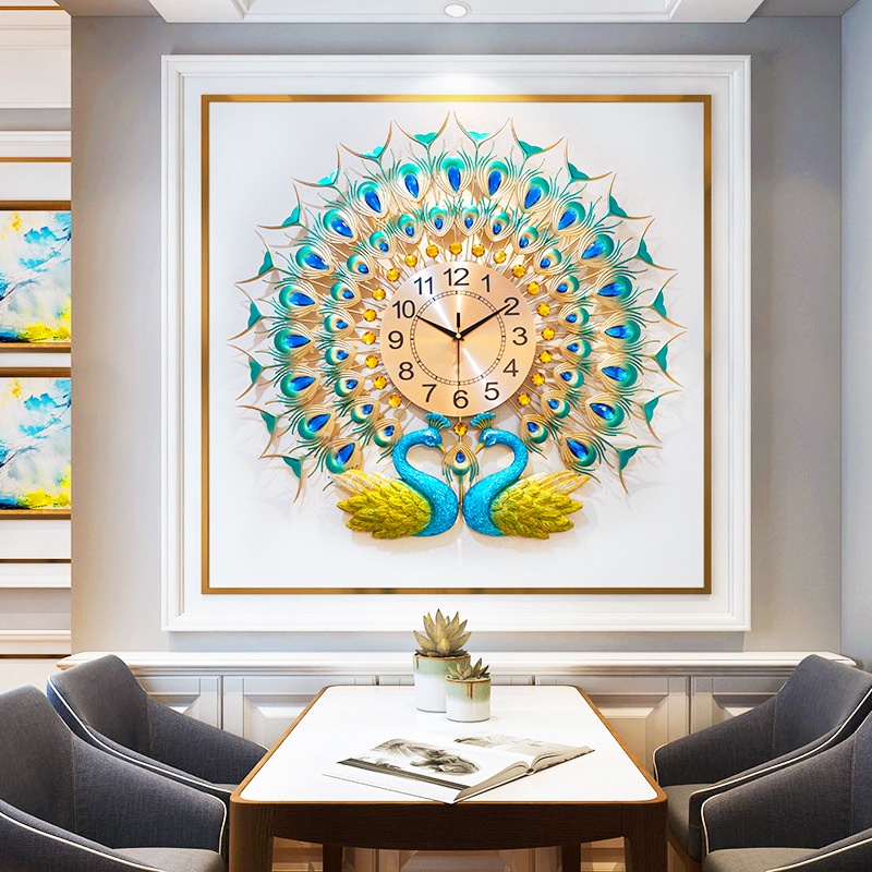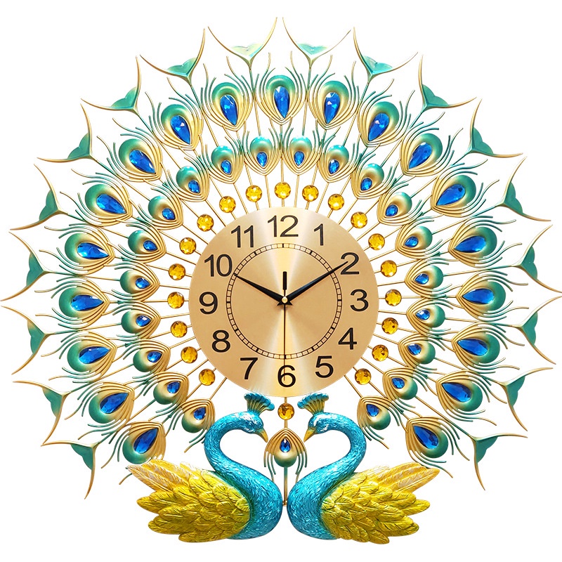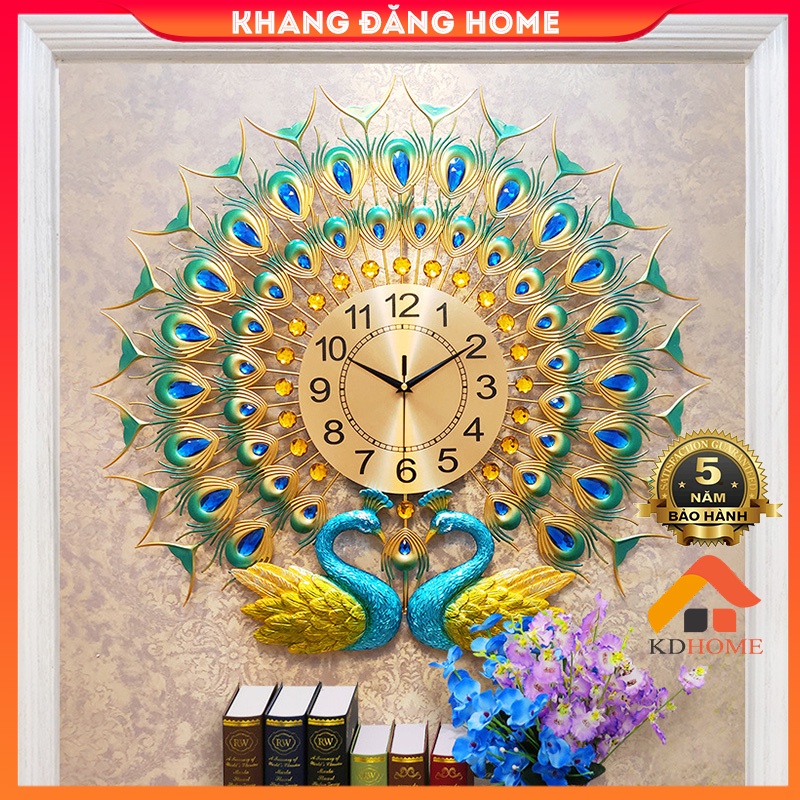 - Đồng hồ trang trí treo tường đôi chim công xoè đuôi, đồng hồ decor treo tường phòng khách KD612 nguyên khối như trong ảnh