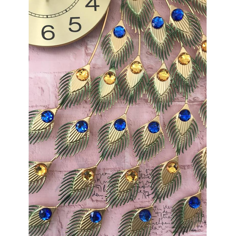 Đồng Hồ Trang Trí Treo Tường Công Khổng Tước Đuôi Thả