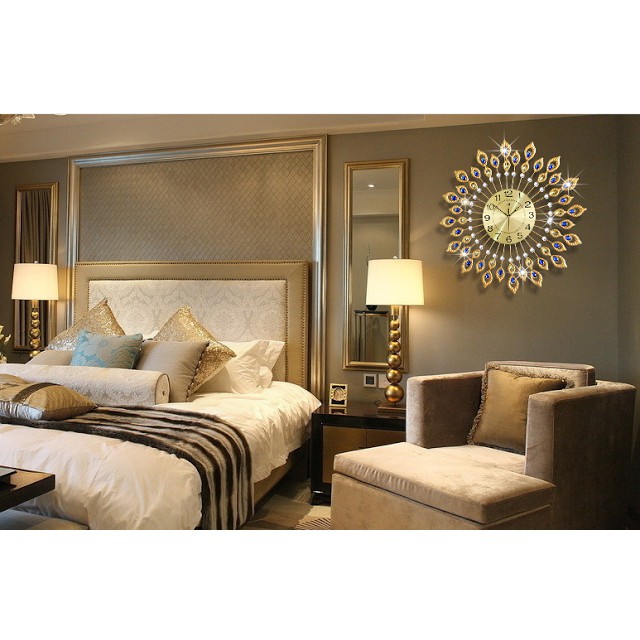 2.Những điểm nổi bật của đồng hồ treo tường trang trí hình đuôi công pha lê.