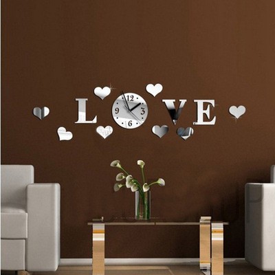 Đồng hồ treo tường Acrylic mặt gương kiểu chữ "LOVE" 3D