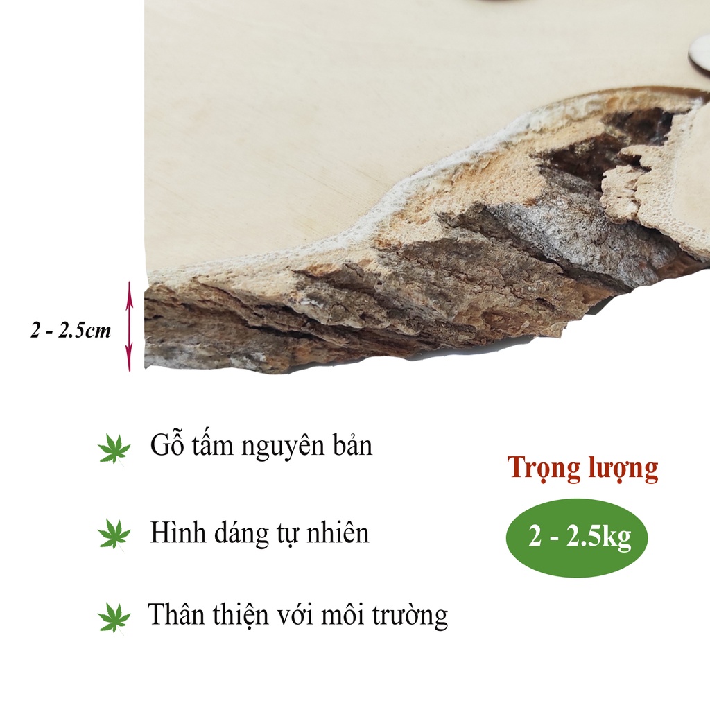 Kích thước: 28~33cm Rộng x 60~65cm Dài x 2~2.5cm Dày. Hình dáng tự nhiên không trùng lặp.