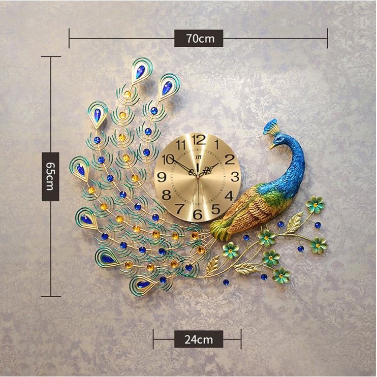 - Đồng hồ treo tường con công được thiết kế tinh tế đến từng chi tiết nhỏ phù hợp với mọi không gian tường nhà bạn. Đặc biệt kim đồng hồ tĩnh âm chạy êm, không gây tiếng ồn vào ban đêm.