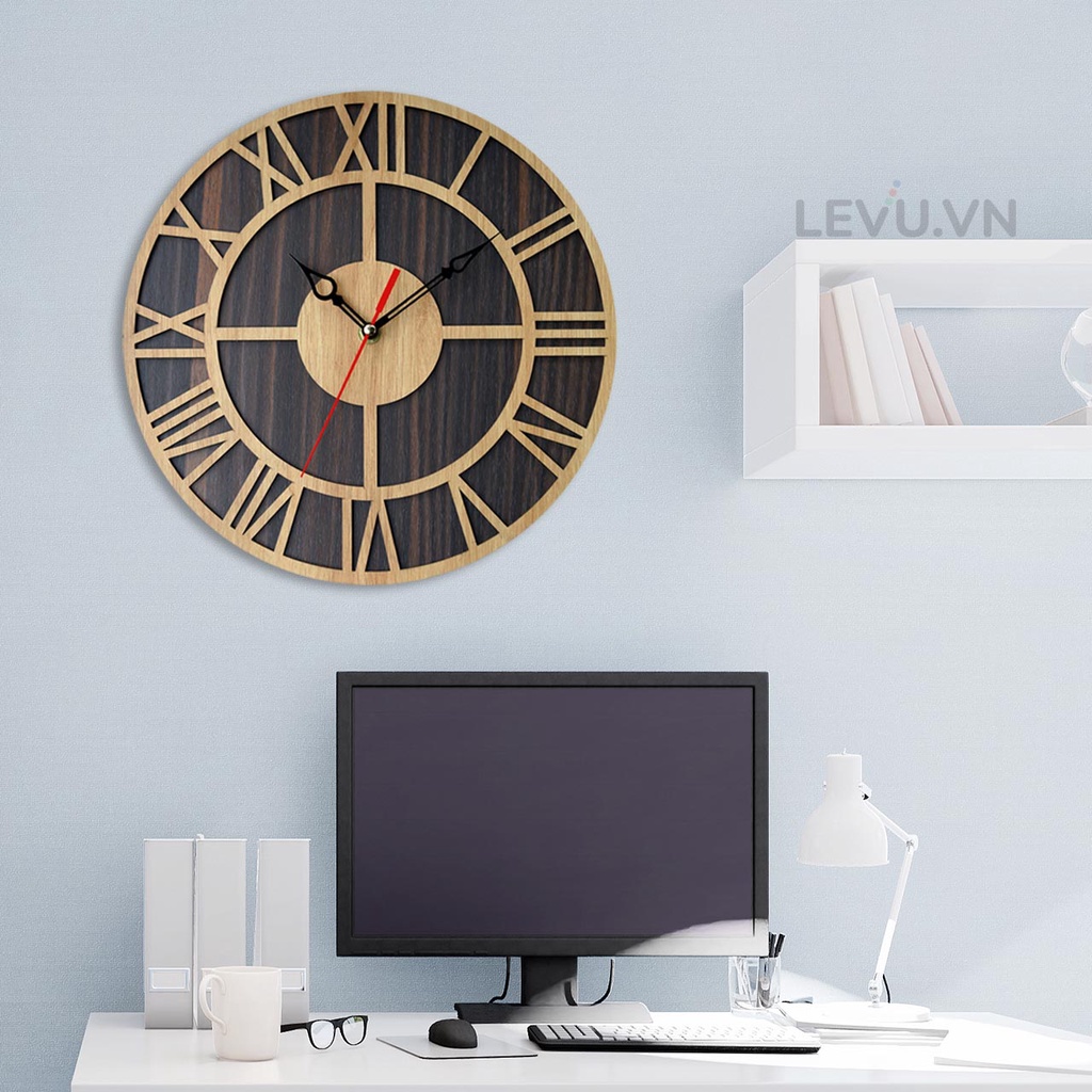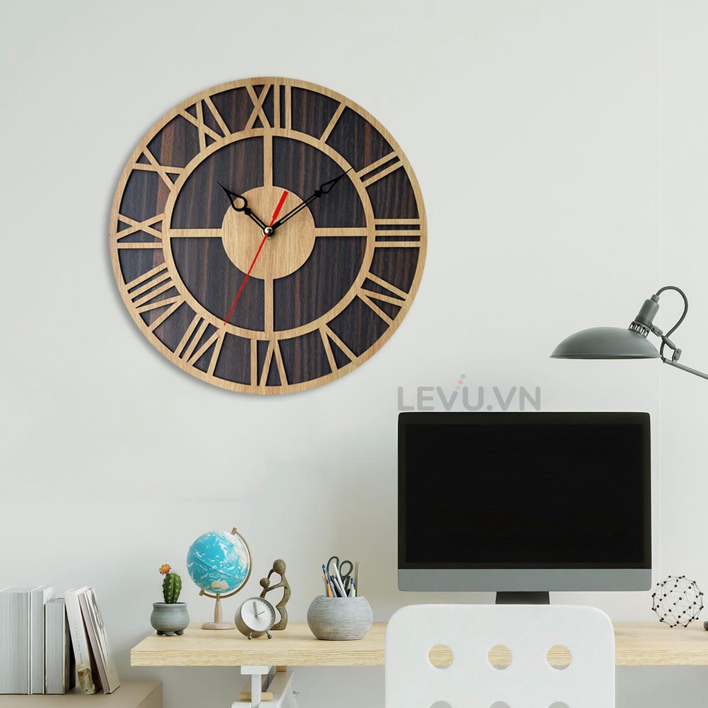 Đồng Hồ Treo Tường cổ điển LEVUDH12 số La Mã mặt Gỗ