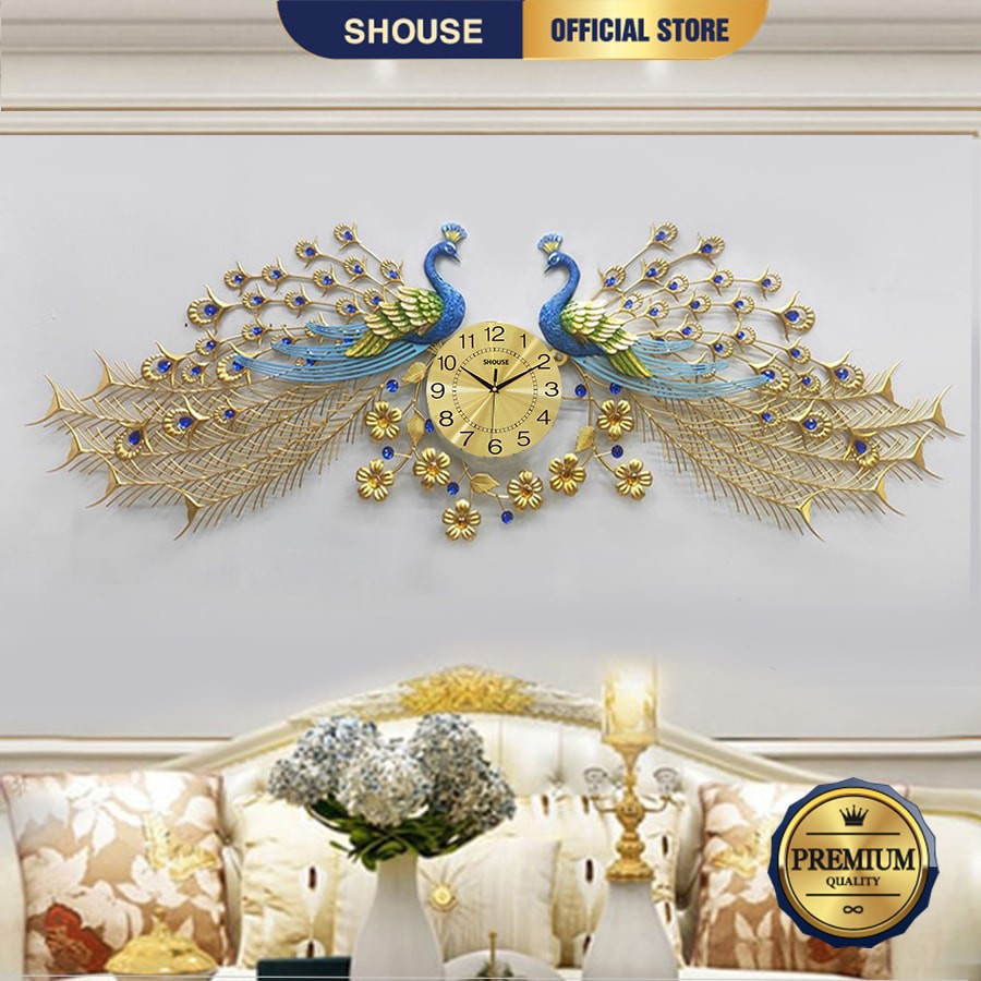 Đồng Hồ Treo Tường Con Chim Công Khổng Tước Kim Trôi A999 Nghệ Thuật Cao Cấp Shouse hiện đại 3D kích cỡ lớn đẹp