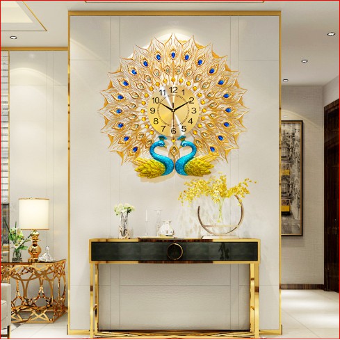 Đồng Hồ Treo Tường Con Chim Công Khổng Tước Kim Trôi Mã 618 Nghệ Thuật Cao Cấp hiện đại 3D kích cỡ lớn đẹp