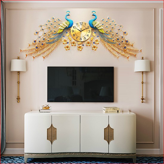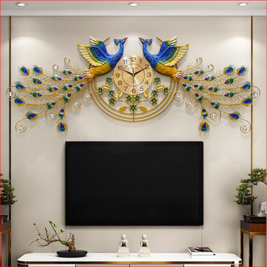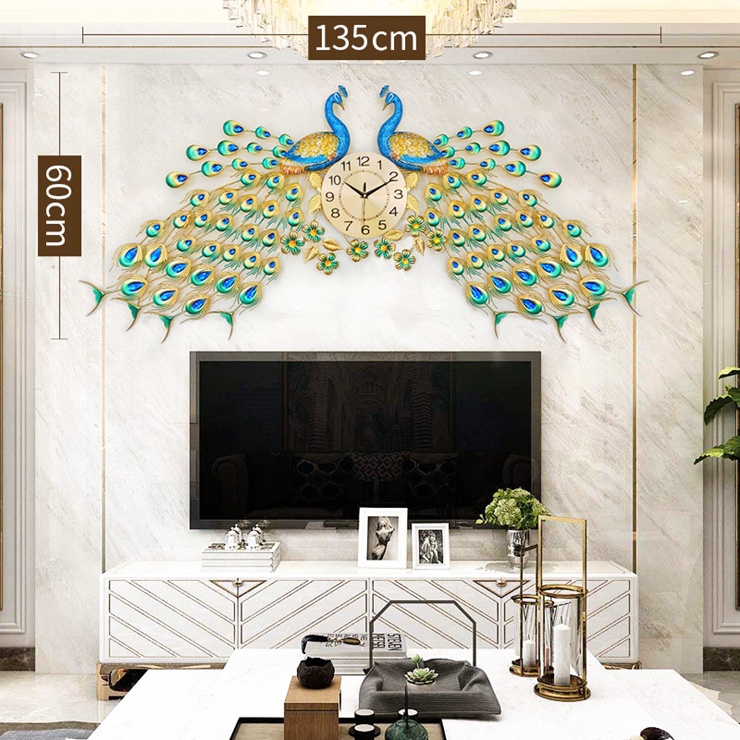 Đồng Hồ Treo Tường Con Chim Công Khổng Tước Kim Trôi 266 Nghệ Thuật Cao Cấp hiện đại 3D kích cỡ lớn đẹp