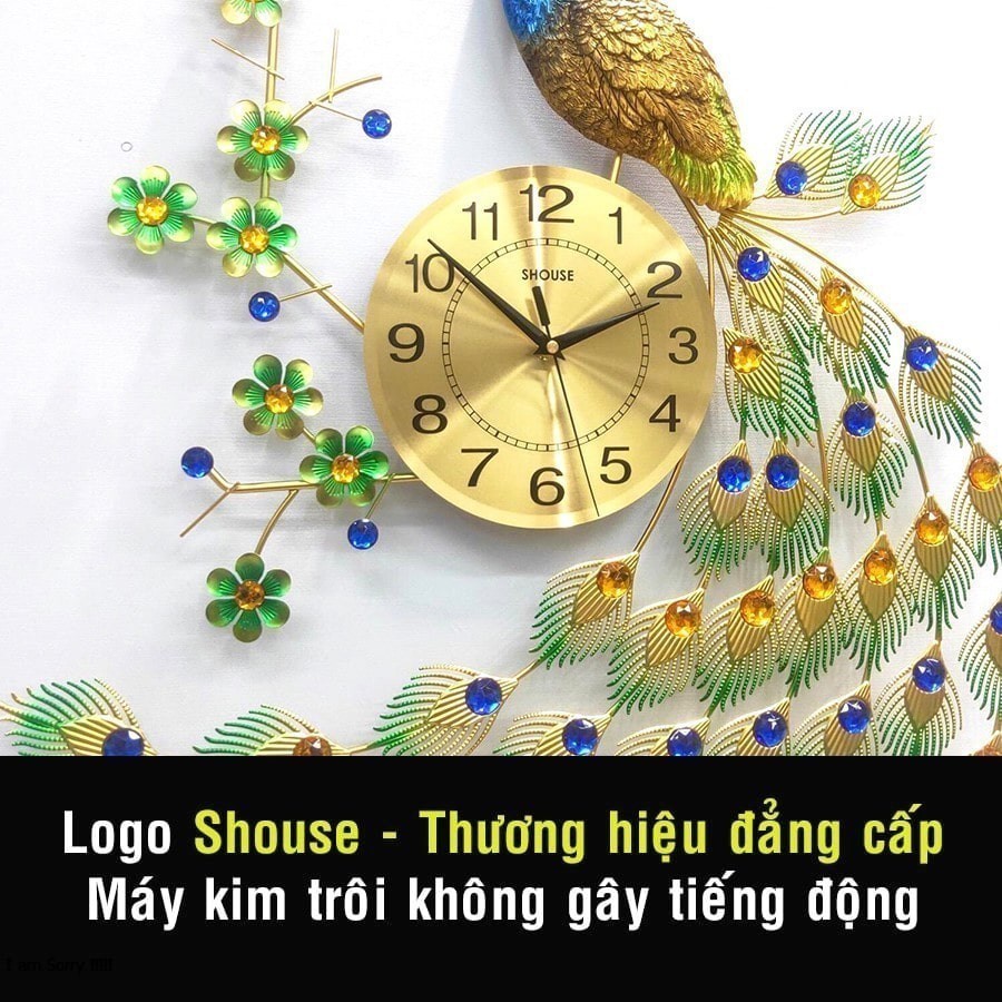 Giới thiệu Đồng Hồ Treo Tường Con Chim Công Khổng Tước xanh Shouse A68 Trang Trí hiện đại kim trôi