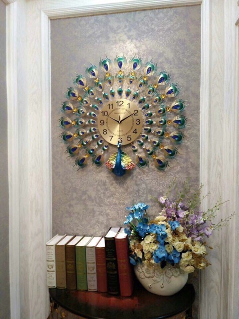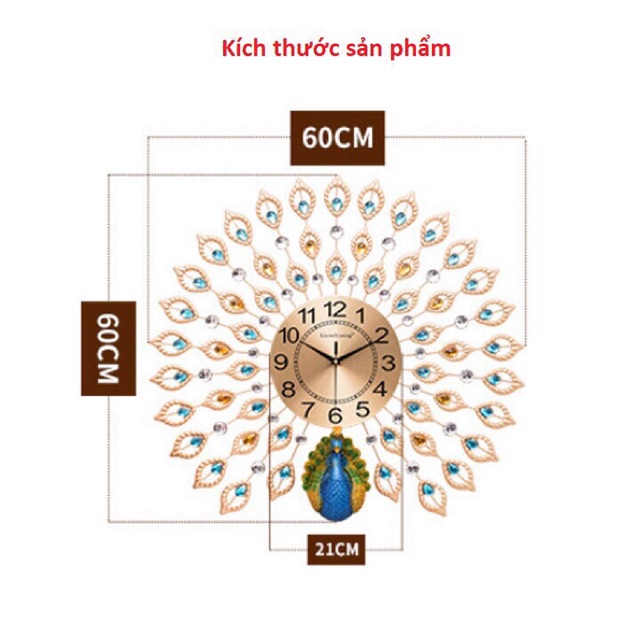 ✨ Kích thước: đường kính đuôi công là 60cm, đường kính mặt đồng hồ là 21cm.