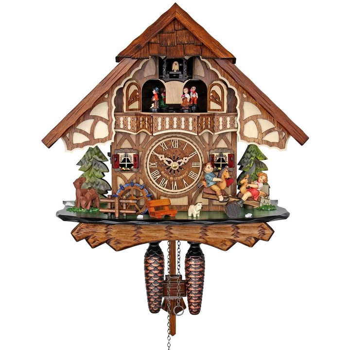 Đồng hồ Cuckoo Engstler 4916 MT Kuckucksuhr 34 cm⚡Nó có đầy đủ các con số và cung cấp nhiều cảnh thú vị để khám phá. Các hình khiêu vũ đầy màu sắc trên đỉnh được làm rất chi tiết và thay đổi khi nhạc được phát (mỗi giờ).