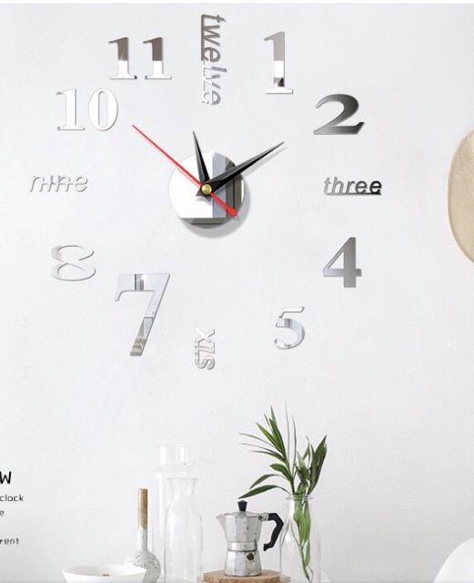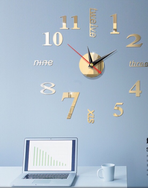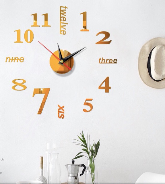 Đồng hồ treo tường - dán tường DH76 chữ Three-Six_Nine-twelve, Đồng hồ trang trí tường9
