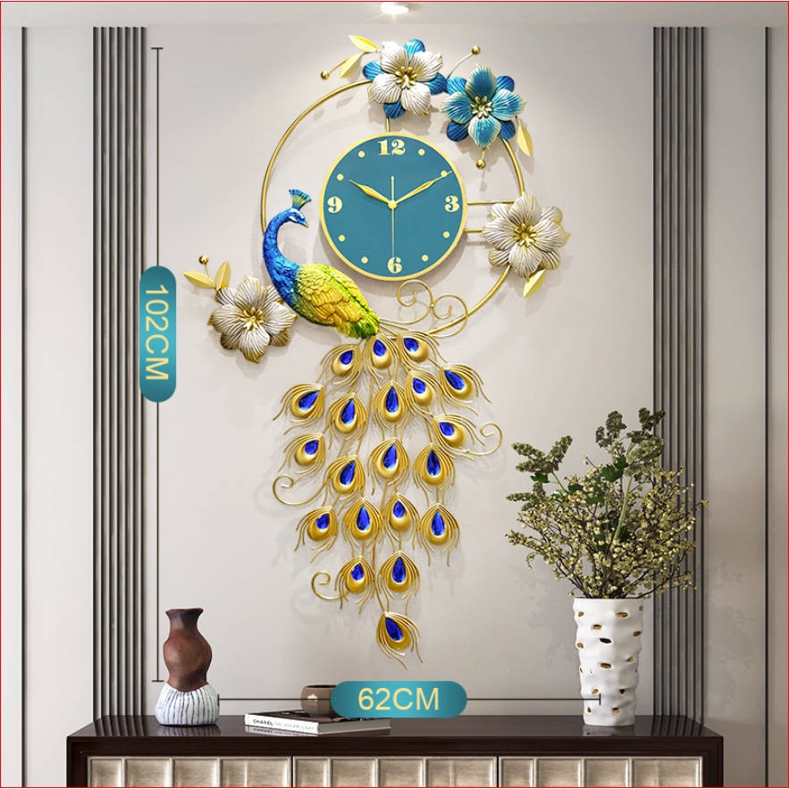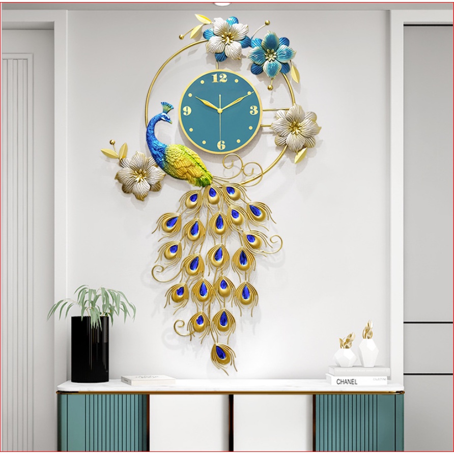 Đồng hồ treo tường decor chim công mã 2920 loại lớn sang trọng hiện đại phù hợp phòng khách, phòng ngủ