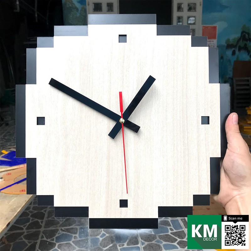 Nhà cửa & Đời sống > Trang trí nhà cửa > Đồng hồ || Đồng hồ treo tường decor phong cách pixel bằng gỗ cắt laser KMDH04Còn hàng