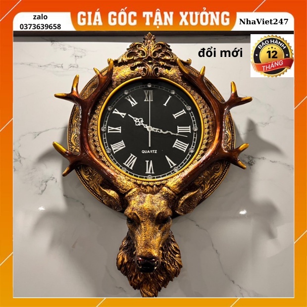 Giới thiệu Đồng Hồ Treo Tường Đẹp mẫu Hươu đá sừng vàng-kích thước 80x50cm-vật treo tường trang trí nhà -quà tặng ý nghĩa ,giá rẻ