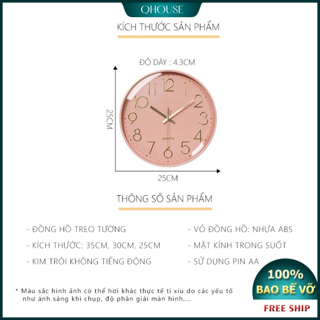 * QHOUSE cam kết với khách hàng về sản phẩm Đồng hồ trang trí decor cao cấp Qhouse máy kim trôi đường kính 25cm: