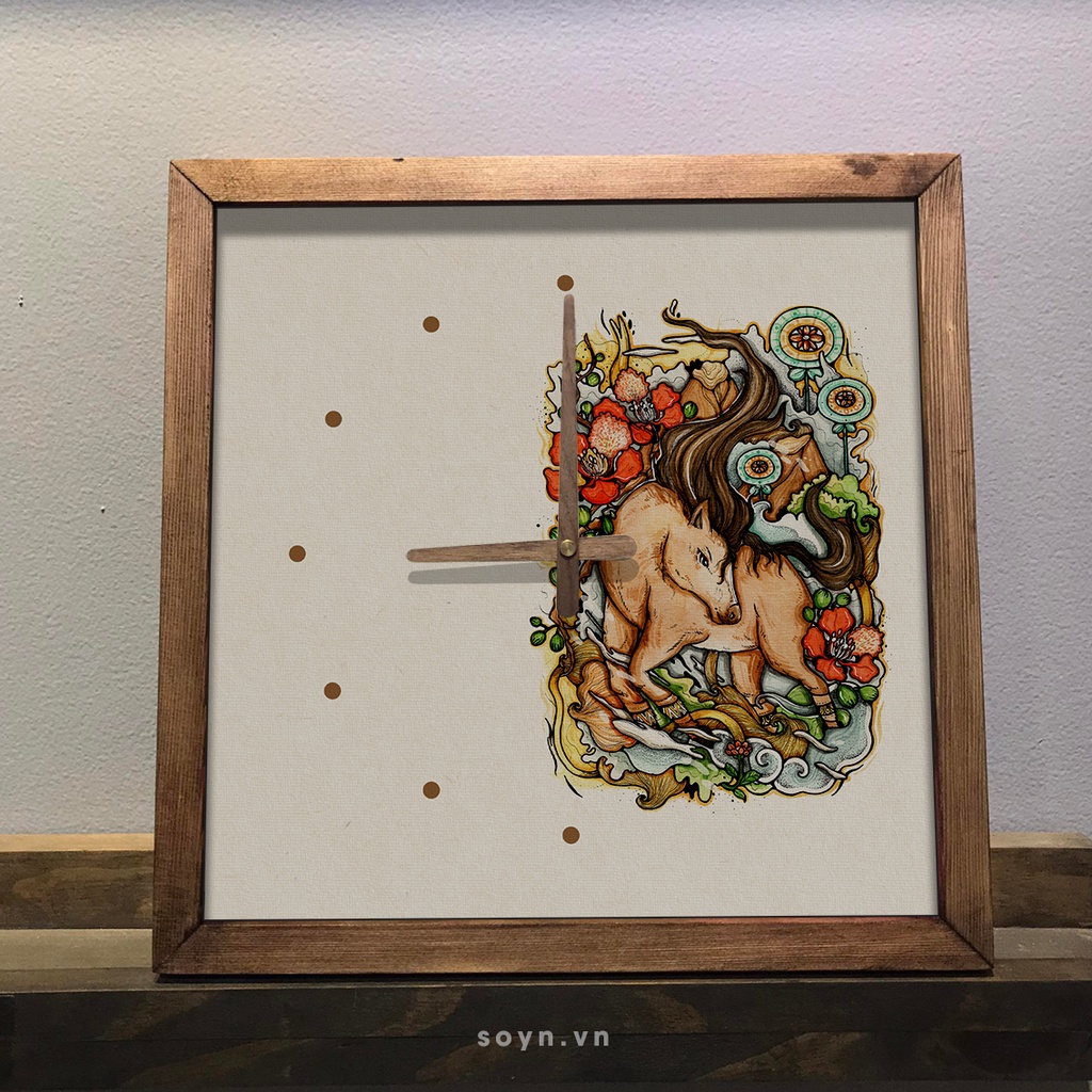 Mỗi chiếc đồng hồ treo tường của Soyn không chỉ có chức năng xem giờ mà thêm vào đó là sự lồng ghép những hình ảnh nghệ thuật ấn tượng và tinh tế. Điều đó sẽ tạo nên một sản phẩm rất đặc biệt khi được treo trên tường nhà.- Sản phẩm gồm tranh được in trên nền vải canvas, khung viền gỗ tự nhiên, máy kim trôi không gây tiếng ồn và điểm thú vị nữa là bộ kim đồng hồ cũng được làm bằng gỗ rất tỉ mỉ.