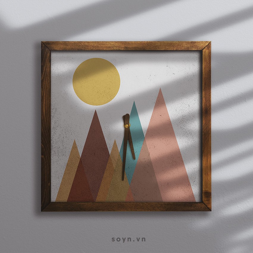 Mỗi chiếc đồng hồ treo tường của Soyn không chỉ có chức năng xem giờ mà thêm vào đó là sự lồng ghép những hình ảnh nghệ thuật ấn tượng và tinh tế. Điều đó sẽ tạo nên một sản phẩm rất đặc biệt khi được treo trên tường nhà.- Sản phẩm gồm tranh được in trên nền vải canvas, khung viền gỗ tự nhiên, máy kim trôi không gây tiếng ồn và điểm thú vị nữa là bộ kim đồng hồ cũng được làm bằng gỗ rất tỉ mỉ.