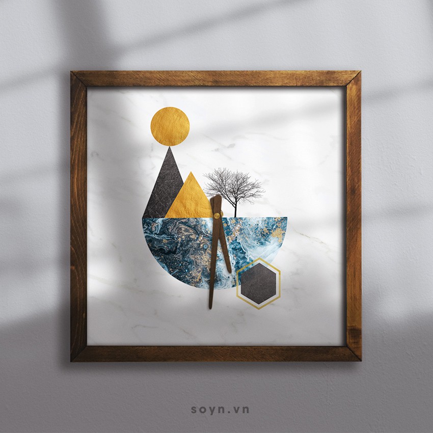 Mỗi chiếc đồng hồ treo tường của Soyn không chỉ có chức năng xem giờ mà thêm vào đó là sự lồng ghép những hình ảnh nghệ thuật ấn tượng và tinh tế. Điều đó sẽ tạo nên một sản phẩm rất đặc biệt khi được treo trên tường nhà.- Sản phẩm gồm tranh được in trên nền vải canvas, khung viền gỗ tự nhiên, máy kim trôi không gây tiếng ồn và điểm thú vị nữa là bộ kim đồng hồ cũng được làm bằng gỗ rất tỉ mỉ.