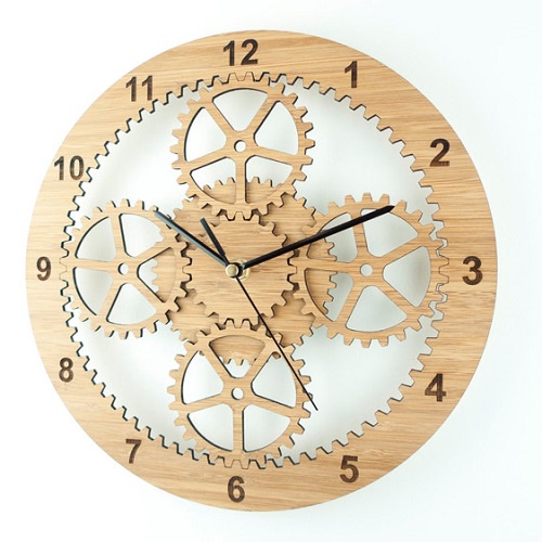 Đồng hồ treo tường gỗ Bánh Răng Cổ Điển, Đồng hồ trang trí quán cafe phòng khách in theo yêu cầu ( Tặng kèm Pin)