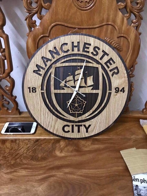 ĐỒNG HỒ TREO TƯỜNG GỖ ĐIÊU KHẮC LOGO ĐỘI BÓNG YÊU THÍCH CỦA CÁC MÀY RÂU